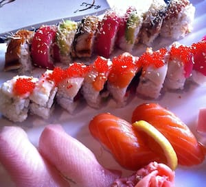 Juicy seafood lobster tenders scallops shrimp stir fried vegetables and sashimi. Grilled salmon 3 pieces of shrimp tempura and 3 pieces of fried calamari. Sushi Bars Teppanyaki Japanese.